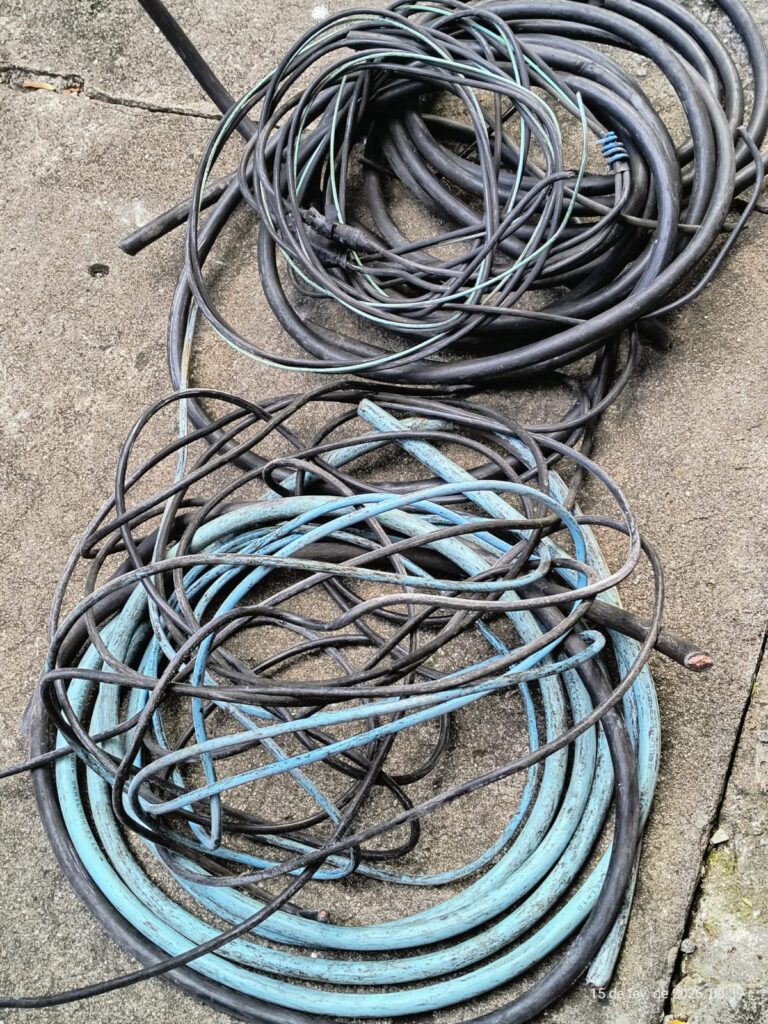 Durante a revista, foram encontrados aproximadamente cinco metros de cabos elétricos, além de um alicate e uma chave de boca. O disjuntor do estabelecimento estava danificado. O gerente compareceu ao local e o homem foi conduzido ao 1º DP, onde a prisão em flagrante foi ratificada por furto consumado.