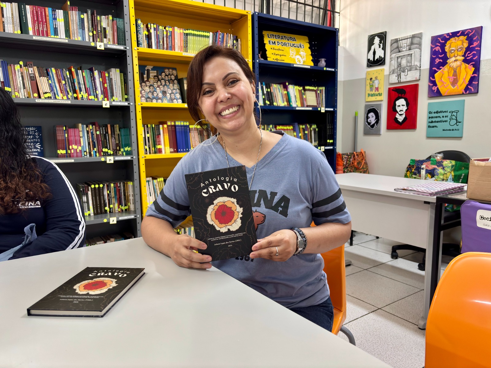 “Escrever não é só uma tarefa escolar; é um espaço de expressão. Em tempos em que tudo é tão rápido e superficial, ter um lugar para criar algo autoral é fundamental”, comentou Juliana, há 18 anos na rede municipal de São Caetano. Ela foi trabalhando ao longo de todo 2025 com seus alunos essa necessidade de colocar para fora todo conteúdo absorvido nas aulas das oficinas de Escrita Criativa e também nos debates do Clube de Leitura. Foi então que a surpresa positiva veio. “Os textos estavam tão bons que seria injusto deixá-los apenas nas nossas pastas. Eles precisavam ganhar o mundo.”