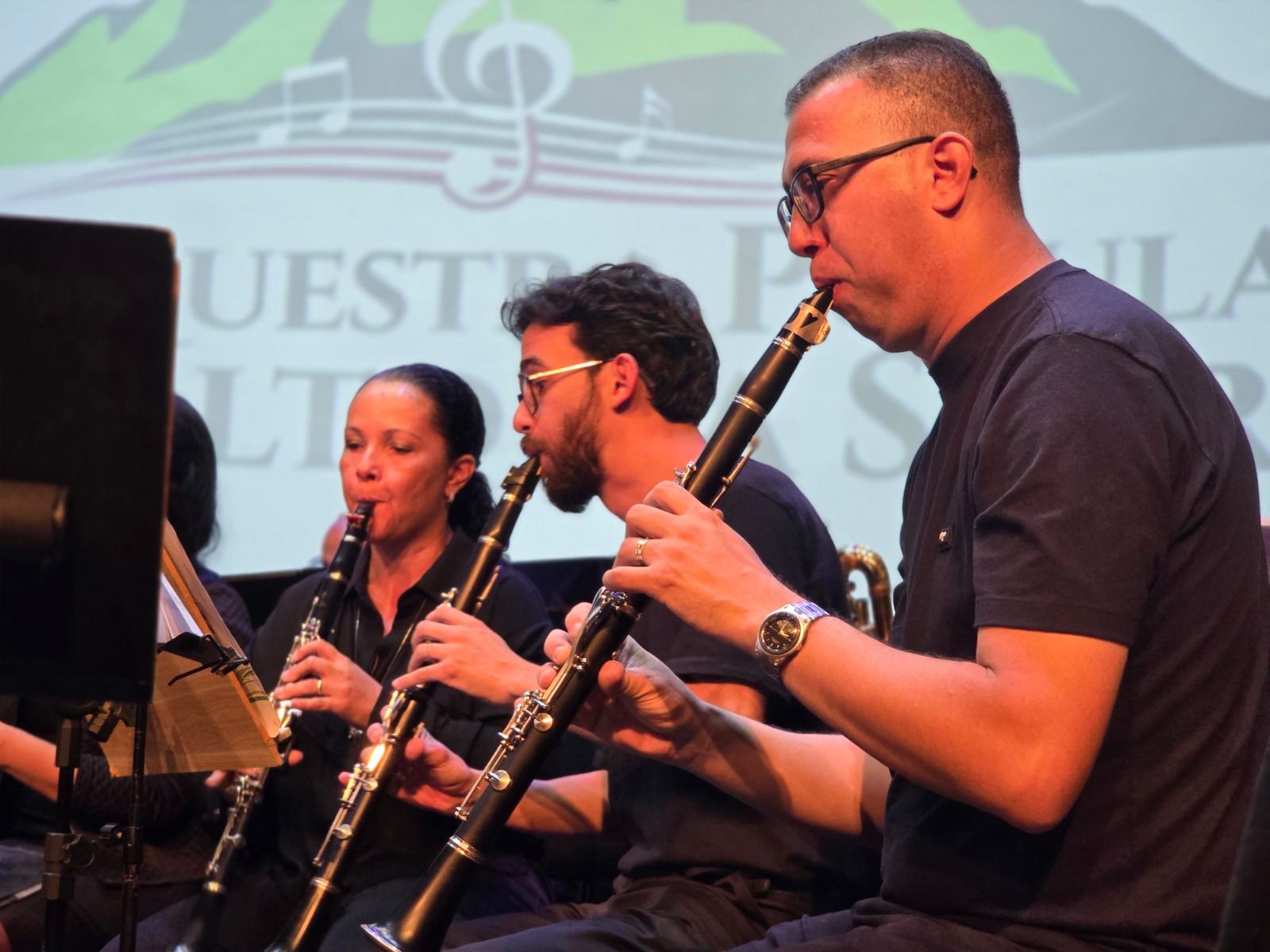 A apresentação contou com participação da Orquestra Popular Alto da Serra, responsável pela abertura da noite com composições autorais. Na sequência, a Banda Sinfônica da EMARP apresentou repertório com peças de música erudita, trilhas de animações conhecidas, clássicos do rock e uma seleção de baião.