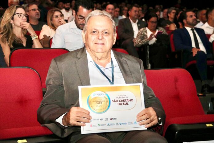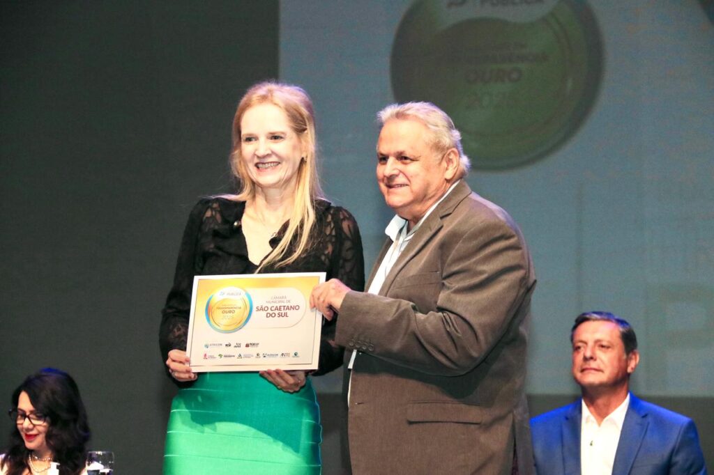 A Câmara Municipal de São Caetano foi agraciada com o Selo Ouro de Transparência, concedido pelo Tribunal de Contas do Estado de São Paulo (TCESP), durante o 30º Ciclo de Debates com Agentes Políticos e Dirigentes Municipais, realizado em Santos, no dia 23 de abril. A honraria foi entregue pela presidente do TCESP, Cristiana de Castro Moraes, ao presidente do Legislativo, Doutor Seraphim (PL), constituindo importante reconhecimento às práticas de governança e transparência da instituição.