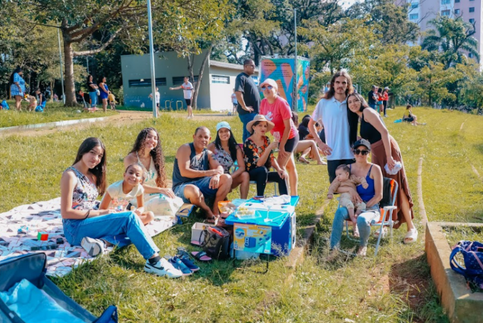 PIQUENIQUE – Outra família que saiu de longe para aproveitar o domingo de muito sol no parque tinha nada menos do que cinco irmãs nascidas na Paraíba, filhas, genro, neto e o marido de uma delas, o Nemilton. No total, 12 pessoas que saíram do bairro Areião, na região do Riacho Grande, para um piquenique decidido de última hora. O local escolhido foi a Chácara Silvestre, onde apenas Nemilton, que morou na Vila São Pedro, já conhecia. Ficaram admirados com a beleza do lugar, como falou várias vezes Josefa Soares da Gama Segunda, escolhida como porta-voz do grupo.