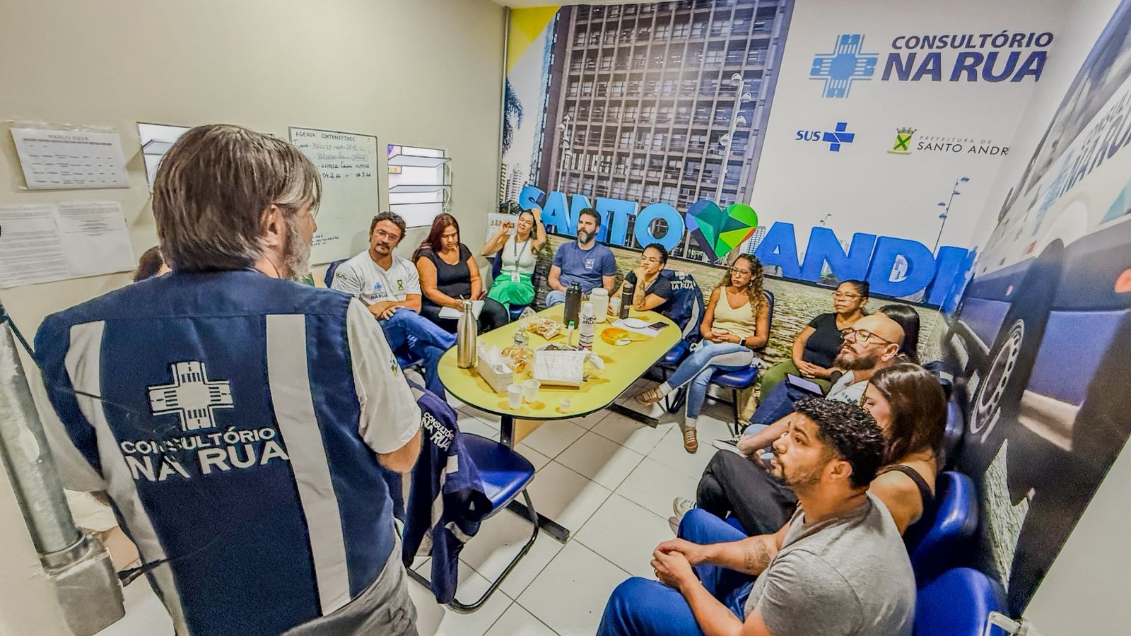 Durante o encontro, a equipe de Santo André apresentou exemplos de casos atendidos e explicou o funcionamento semanal do serviço, além da articulação com outros equipamentos da rede municipal de saúde. A importância do uso de uniformes também foi destacada como medida de segurança e identificação para os profissionais durante as abordagens.