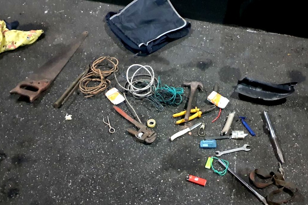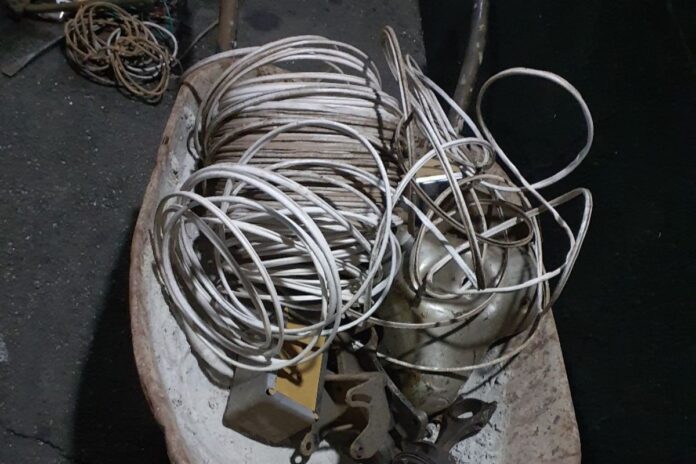 Durante as diligências, foram localizadas ferramentas utilizadas na prática de crimes, além de fiação elétrica já cortada, indicando ação criminosa em andamento.