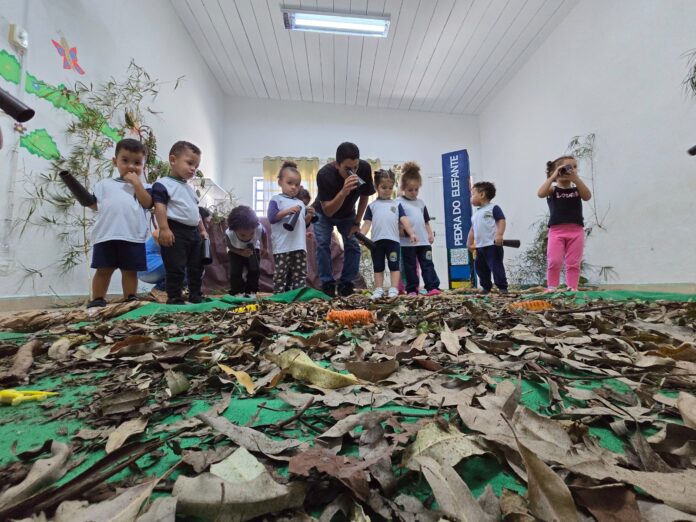 A ambientação foi cuidadosamente preparada pela equipe escolar, que transformou o espaço em um ambiente sensorial, com elementos que remetem à formação rochosa, estimulando a curiosidade, observação e a interação das crianças. Na manhã desta sexta-feira (27), a proposta permitiu que os alunos explorassem, de forma lúdica, características do local — como o formato que lembra um elefante e sua imponência na paisagem, a 977,7 metros de altitude.