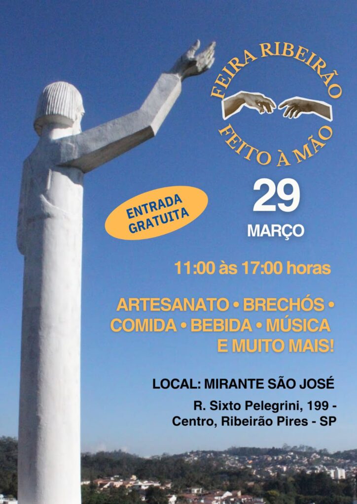Ribeirão Pires recebe, no próximo domingo (29), a feira “Ribeirão Feito à Mão”, evento que reúne artesanato, gastronomia e música em um dos principais cartões-postais do município, o Mirante São José. Com programação das 11h às 17h, a iniciativa valoriza a produção local e oferece ao público uma experiência que combina lazer, cultura e economia criativa em um ambiente ao ar livre. O evento é gratuito e aberto ao público.