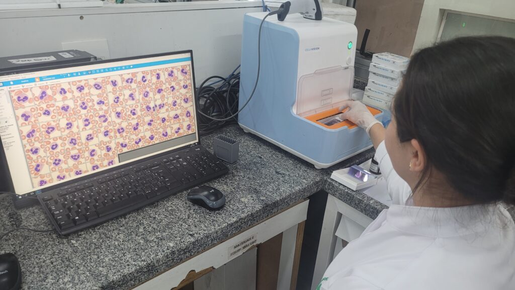 Outros novos recursos que se destacam são o Cellavision, que analisa imagens digitais e simplifica a classificação morfológica e celular, otimizando o tempo de liberação de exames que necessitam de revisão por microscopia, e o equipamento de análise de urina, que integra testes químicos, análise de partículas e imagens digitais para um diagnóstico mais eficiente e preciso. São itens com tecnologia de ponta e do nível dos grandes serviços da rede particular.
