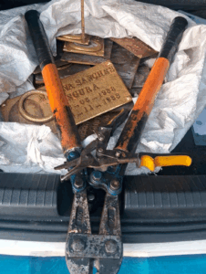 Durante a medida, a suspeita foi abordada e presa em flagrante. Com ela, foram encontradas placas decorativas de bronze, subtraídas de túmulos, além de ferramentas utilizadas na prática do crime. A mulher estava em liberdade condicional. A equipe de motociclistas da GCM ainda tentou capturar o comparsa, que conseguiu escapar ao escalar um muro de aproximadamente quatro metros, atravessar um apartamento e se evadir em direção ao município de Diadema. A situação está em investigação.