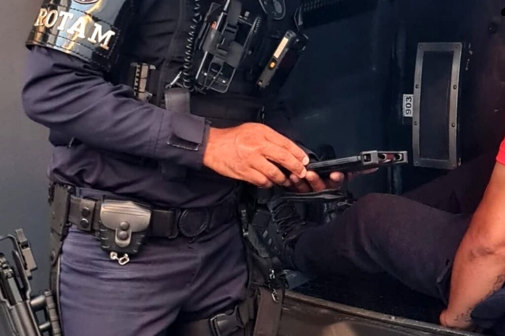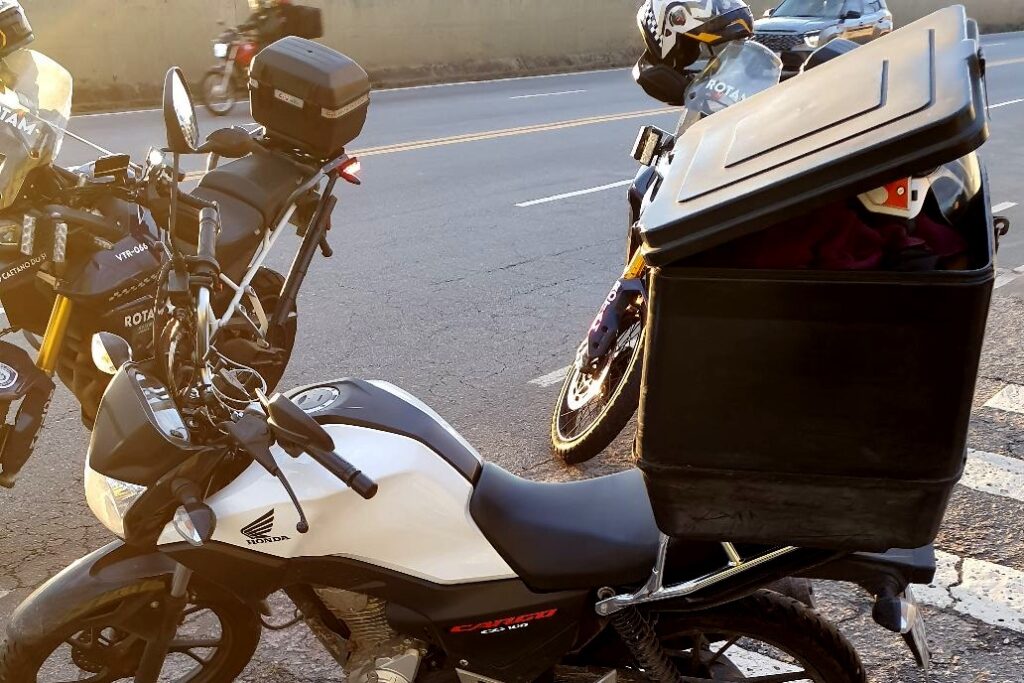 Diante da atitude suspeita, os GCMs iniciaram acompanhamento tático com sinais luminosos e sonoros, obtendo êxito em interceptar o motociclista.