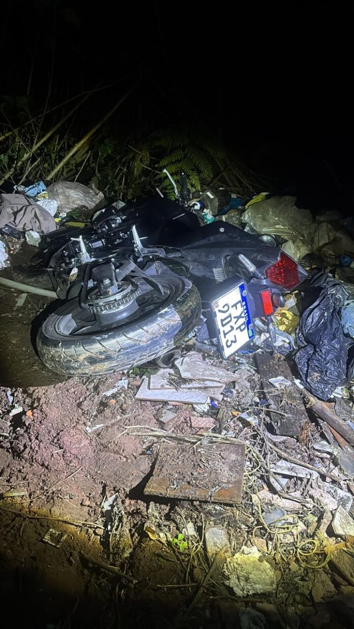 AÇÃO EFETIVA – Com base nas informações repassadas pelo CCO, que já acompanhava o registro do roubo da moto, a equipe de plantão, composta pelos GCMs 3ª Classe Kamyla Souza e Augusto Hassan, iniciou varreduras pela região do Montanhão. Durante o patrulhamento, os agentes avistaram um grupo de motociclistas em uma área isolada e de difícil acesso. Ao perceberem a aproximação da viatura, os indivíduos fugiram, abandonando o local.