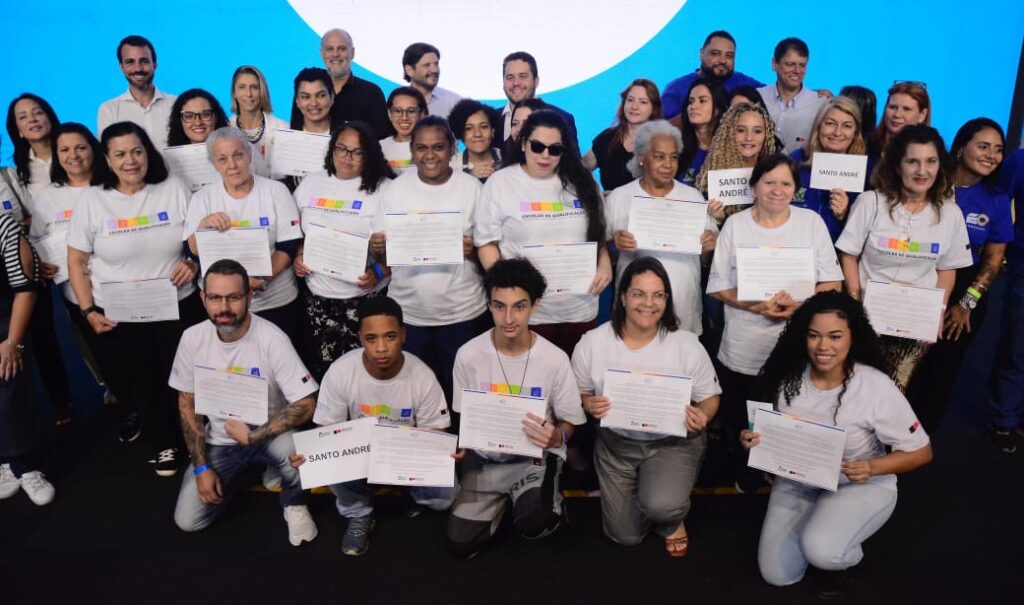 O evento celebrou a conclusão de cursos de alunos de diversas regiões do Estado, entre eles os andreenses, formados por meio da Escola de Ouro, escola de qualificação profissional do Fundo Social de Solidariedade, responsável pela execução direta dos cursos ofertados em parceria com o Governo do Estado de São Paulo, no âmbito da Praça da Cidadania.