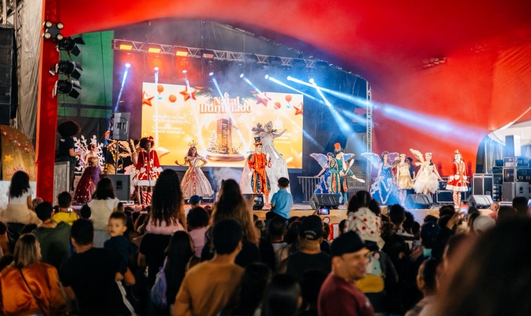 O Paço Municipal se tornou grande área ‘instagramável’ com luzes espalhadas pelos jardins e no Prédio da Prefeitura. ‘Presentão’ gigante e itens que fazem referência aos festejos natalinos compõem o cenário decorativo. Palco recebe mais de 30 apresentações culturais.