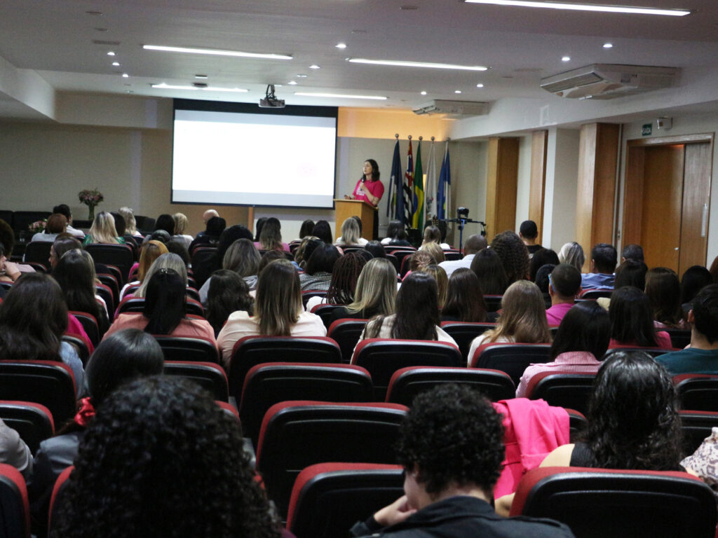 A Fundação do ABC promoveu, na manhã desta segunda-feira (27), uma programação especial em celebração ao Outubro Rosa, mês dedicado à conscientização sobre a prevenção e o diagnóstico precoce do câncer de mama. O evento, realizado no Anfiteatro do Centro Universitário FMABC, em Santo André, reuniu colaboradores da sede administrativa e da FMABC, representantes das unidades gerenciadas, docentes e pacientes em tratamento oncológico, em uma manhã marcada por emoção, acolhimento e troca de experiências.