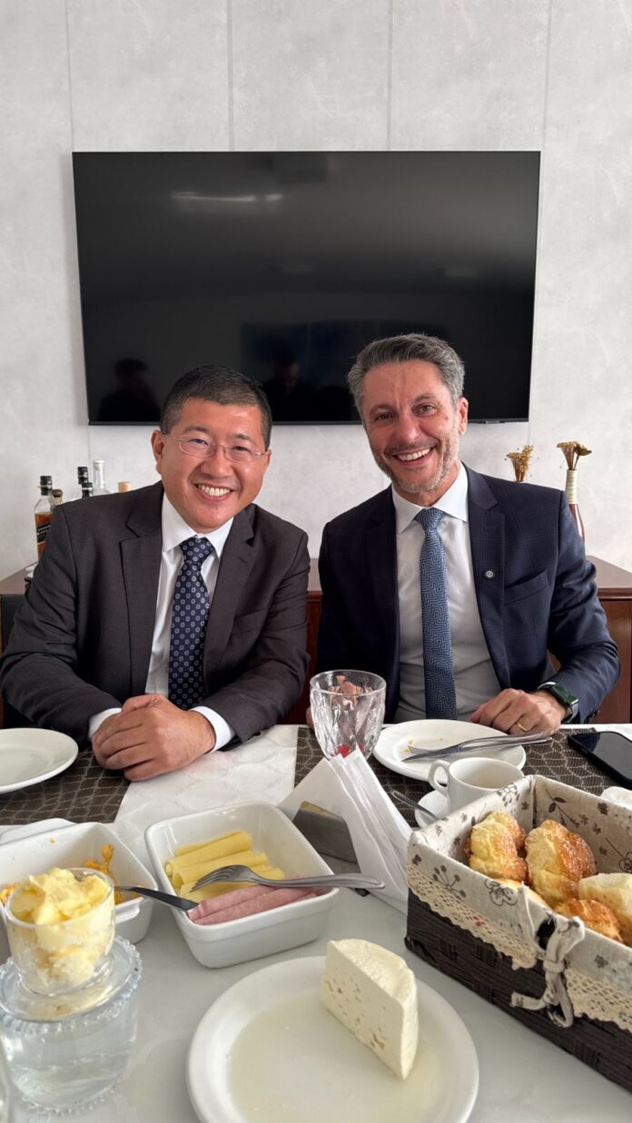 Durante a agenda em Brasília, o prefeito Taka Yamauchi se reuniu com Moisés Selerges, presidente do Sindicato dos Metalúrgicos do ABC (SMABC).