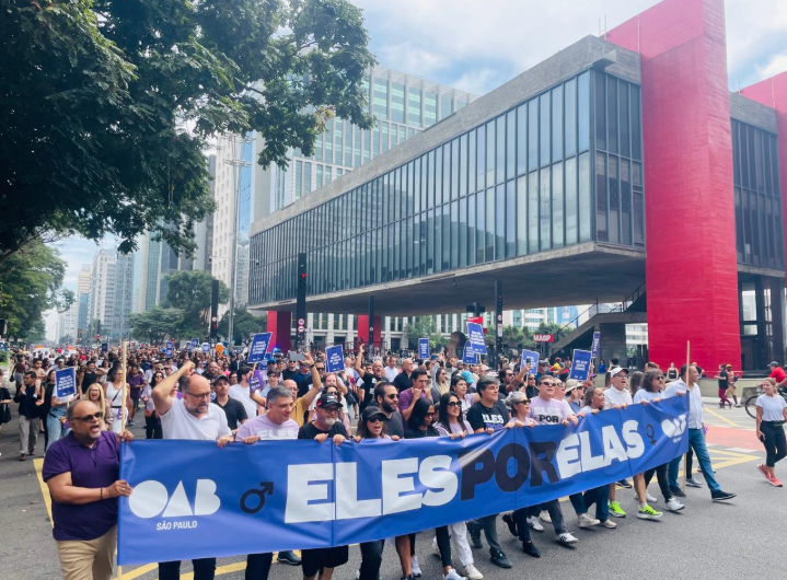 O ato teve como ponto de encontro a farmácia da CAASP, na Avenida Paulista, e teve apoio de lideranças femininas, como Patricia Vanzolini, conselheira federal pela OAB São Paulo e ex-presidente da Ordem paulista. Ela afirmou que o evento era uma oportunidade para os homens mostrarem que são parceiros na luta contra a violência de gênero.