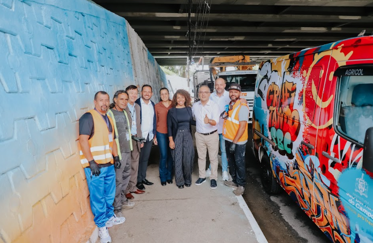 “Esse programa se junta ao Cidade Linda de Viver e a outras ações, para usar espaços urbanos e deixar São Bernardo mais bonita, mais colorida e feliz, além de combater a pichação. Aliás, não vamos tolerar pichação, que aqui tem multa pesada, mas o grafite será incentivado e ampliado. Inclusive, vamos incentivar essa arte também com cursos para jovens da cidade”, disse o chefe do Executivo municipal, acompanhado dos secretários de Serviços Urbanos, Luiz Bortoletto, de Cultura, Samara Dinis, de Planejamento Urbano, Milena Graciano, e Programas Governamentais, Hiroyuki Minami.