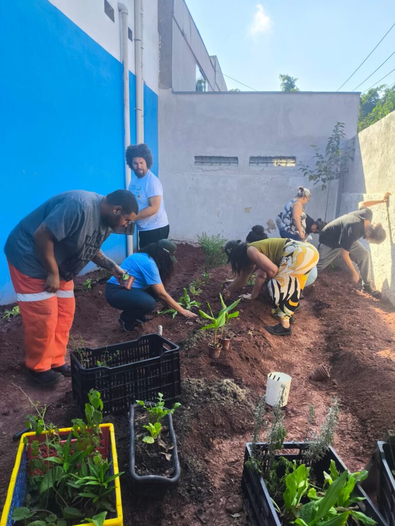 Uma composteira também foi implantada e os servidores que atuam no espaço receberam sensibilização sobre o processamento do resíduo orgânico na composteira, que se transformará em adubo para ser utilizado na própria horta.