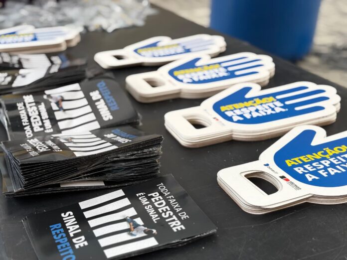 A Prefeitura de Ribeirão Pires, em parceria com o DETRAN-SP, realizou, na manhã desta quarta-feira (1º), ação de educação para o trânsito voltada à pedestres, dentro da campanha estadual “Sinal de Respeito”. A atividade aconteceu na travessia que liga o Terminal Rodoviário Turístico à Rua do Comércio. Durante a ação, equipes do DETRAN-SP e do Departamento de Mobilidade Urbana distribuíram materiais informativos e orientaram pedestres e condutores sobre a importância do respeito às normas de trânsito.