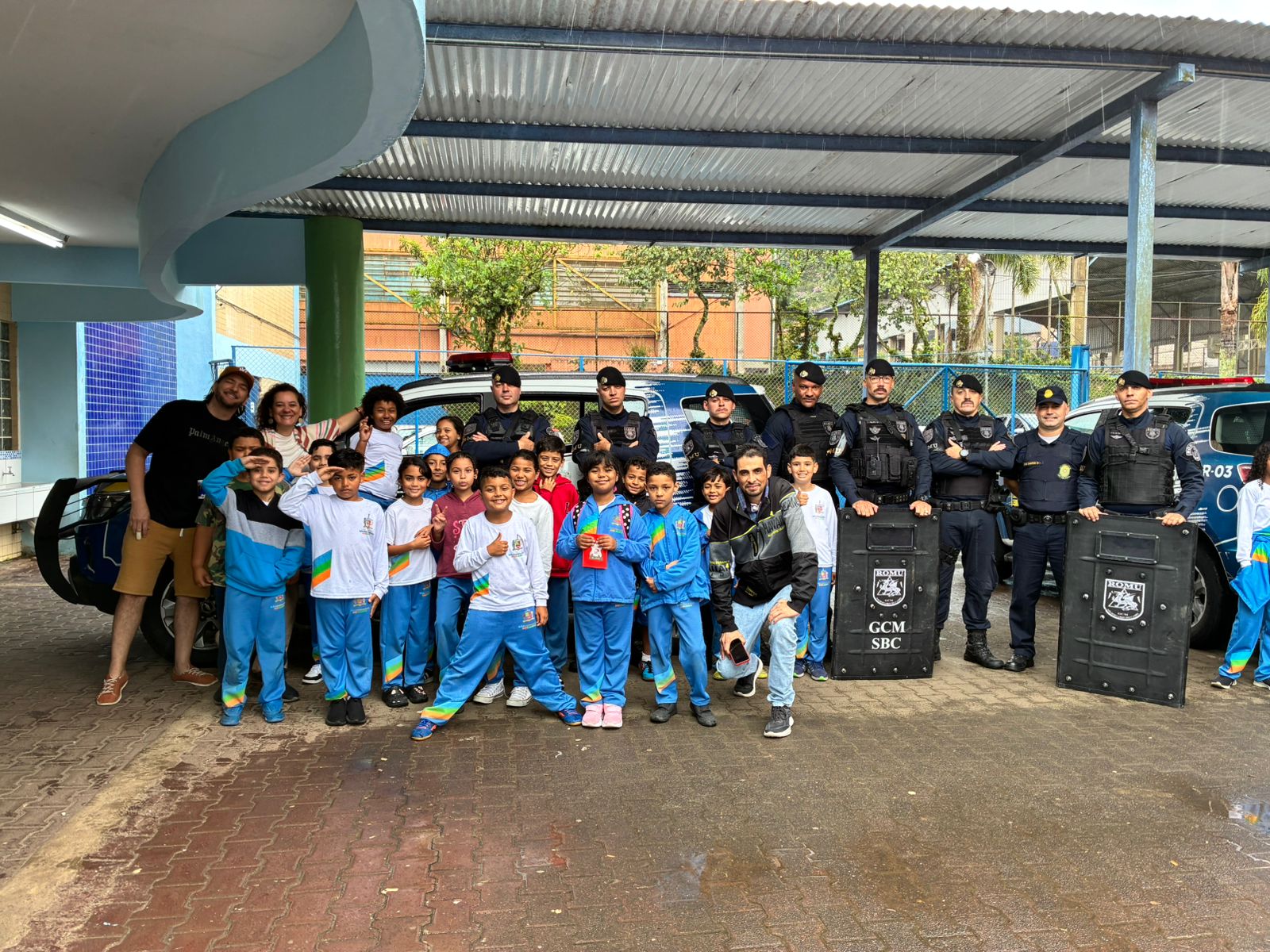 A EMEB (Escola Municipal de Educação Básica) Professor Claudemir Gomes do Vale, localizada no Montanhão, em São Bernardo, realizou ação pedagógica com a participação da Romu (Rondas Ostensivas Municipais), especializada da GCM (Guarda Civil Municipal), proposta pelo GCM 1° Classe Domingues em conjunto com a diretora Liene Machado. A iniciativa buscou aproximar a comunidade da Guarda e ganhou ainda mais significado pelo interesse de sua filha, Luiza, de 8 anos, aluna da instituição, que admira o trabalho da corporação e desejava conhecer a equipe de perto.