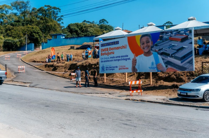 Em mais uma iniciativa de valorização da Educação municipal, o prefeito de São Bernardo, Marcelo Lima, assinou neste sábado (25/4) ordem de serviço para construção de nova EMEB no Botujuru/Demarchi. O ato do chefe do Executivo autoriza o início imediato das obras em terreno de 6.800 metros quadrados, sendo 1.887 metros quadrados de área construída. A escola entrará no modelo de tempo integral, e ficará situada na Avenida Nicola Demarchi, com a previsão de receber em torno de 325 alunos do 1° ao 5° ano do Ensino Fundamental, atendendo uma demanda antiga de moradores da região.