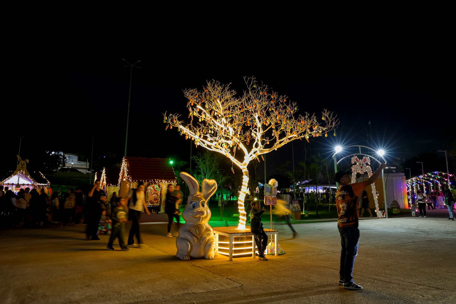 Foi uma noite mágica, especialmente para as crianças. Os pequenos Matias, 3 anos, e Renato, 4 anos, adoraram os coelhos de Páscoa, e percorreram as várias casinhas temáticas (a casa de brinquedos, a casinha musical, o quarto dos sonhos, o jardim encantado…) sob os cuidados das mamães Taís Gonçalves e Priscila Marques Alves. “O Matias está radiante. Ele já tinha gostado da Vila de Natal, lá no Chico Mendes, mas aqui está sendo tudo novo para ele, inclusive esse momento lúdico com os coelhinhos da Páscoa e sendo aqui no Parque Linear, que foi uma grande sacada. Ele até já fez amizade aqui”, explicou Taís, ao ver o filho brincando numa das casinhas decoradas com o amiguinho Renato.