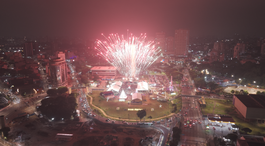 O Show da Virada na Esplanada do Paço Municipal segue até 1h desta quinta-feira, dia 1º de janeiro de 2026, sob a tutela de Yasmin Santos, que estará no palco agitando a contagem regressiva para 2026.