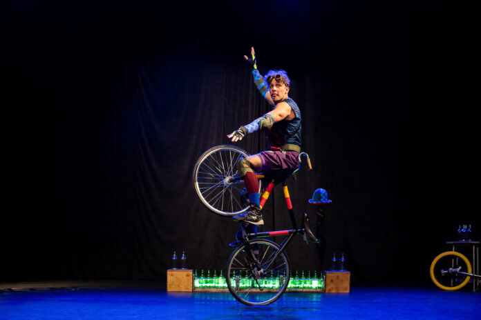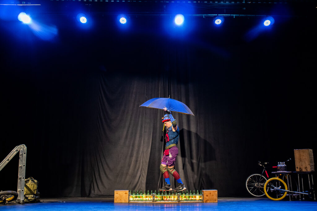Combinando garrafas de vidro, monociclo, bicicleta acrobática e cenas que desafiam a gravidade, o artista apresenta um número circense em que o público é convidado a acompanhar a jornada de um viajante sonhador que embarca em sua maior aventura: chegar ao pico de uma grande montanha e viver o momento sublime da conquista e superação.