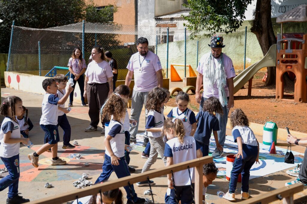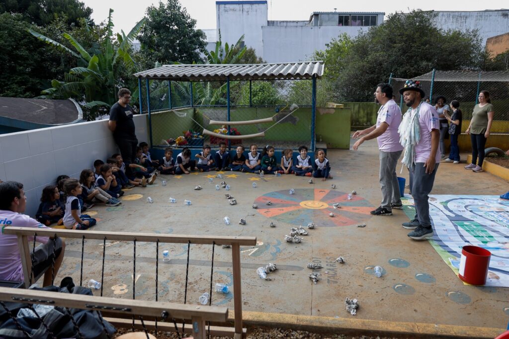 Nesta etapa, a chamada “rodada da reciclagem” apresenta atividades voltadas à conscientização ambiental, com foco em temas como separação de resíduos, economia de água e preservação do meio ambiente. “A gente trouxe o lúdico para ensinar sobre sustentabilidade, reciclagem e até essa consciência ambiental. As crianças se envolvem muito, participam das atividades e interagem com os personagens, o que torna o aprendizado mais significativo”, explicou Luiza.