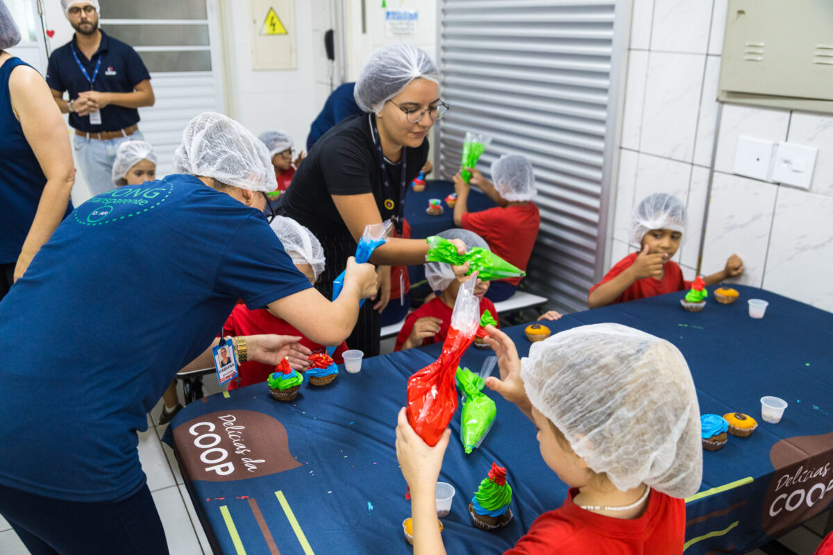 A Campanha Natal do Bem também contempla iniciativas voltadas ao público infantil. Em Santo André, 64 crianças assistidas pela Instituição Amélia Rodrigues participaram, na terça-feira (3 de dezembro), de uma oficina de cupcake. A atividade contou com apoio da Central de Panificação da Coop (CPAN), responsável pelas massas de baunilha e chocolate, e da parceira Rich’s, que forneceu recheios e coberturas.
